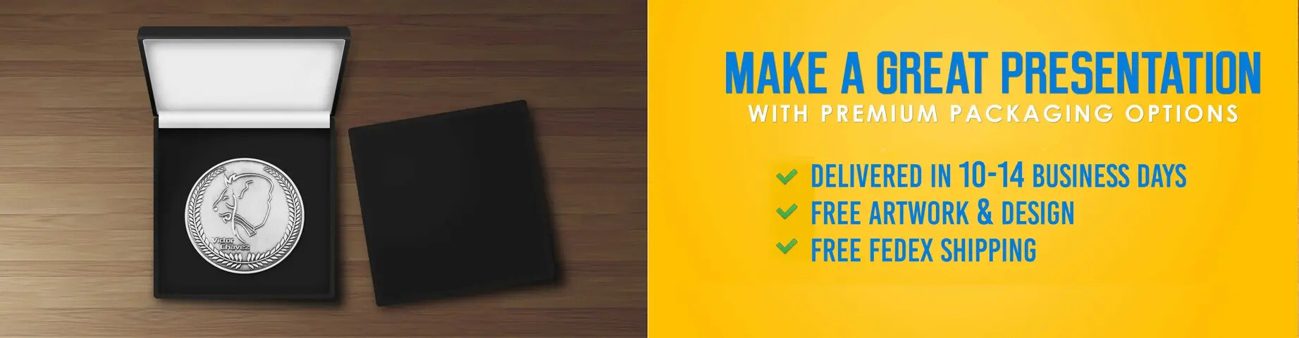 Get your custom challenge coins fast with Free Fedex 10 day shipping.
